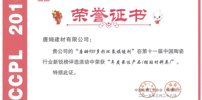 唐姆�;u粘結(jié)劑905榮獲“2015年度中國(guó)家居產(chǎn)業(yè)網(wǎng)友最喜愛(ài)產(chǎn)品”