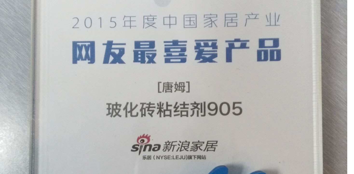 唐姆�;u粘結(jié)劑905榮獲“2015年度中國(guó)家居產(chǎn)業(yè)網(wǎng)友最喜愛(ài)產(chǎn)品”