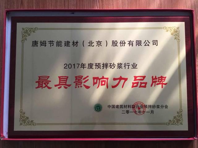 2018年度預(yù)拌砂漿行業(yè)最具影響力品牌