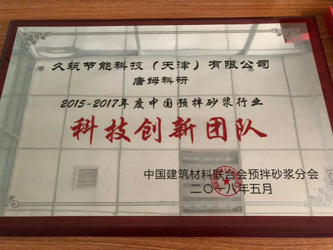 中國(guó)預(yù)拌砂漿行業(yè)科技創(chuàng)新團(tuán)隊(duì)獎(jiǎng)